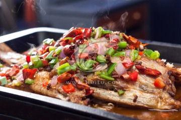 烤制过程中,要不断翻动黑鱼,确保烤制均匀。